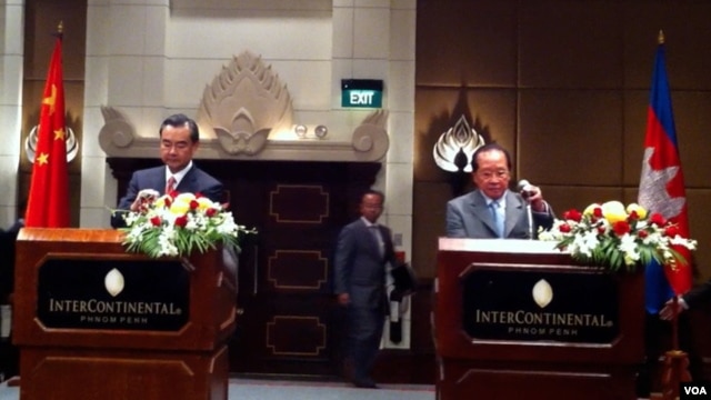 Foreign Minister Wang Yi, who was on a bilateral visit to the country, made his remarks following meetings with his counterpart, Hor Namhong, and Prime Minister Hun Sen, amid a political crisis following last month’s national elections.The Chinese news agency Xinhua reported that Wang congratulated Hun Sen on an election victory for his Cambodian People’s Party, despite ongoing protest by the opposition, which has rejected preliminary results showing a CPP win. Reporters were not allowed questions during the briefing.